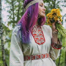 Эта модель косоворотки предназначена для детей, подростков и взрослых мужчин. Подходит как для традиционных русских мероприятий, так и для повседневной носки. Рубаха изготовлена из хлопка, украшена жаккардовой тесьмой с орнаментом по вороту, низу рукавов и самой косоворотки, имеет прямой крой, может подвязыватся поясом, который входит в комплект.