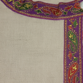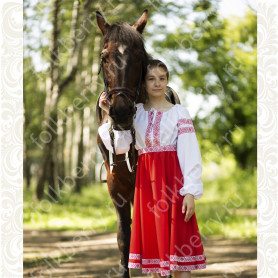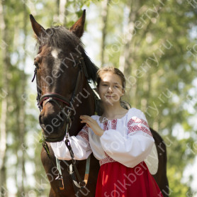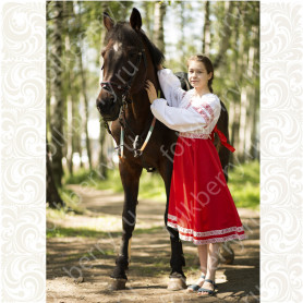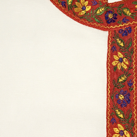 Материалы: лен белого цвета, жаккардовая тесьма с обережными символами