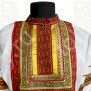 Мужская рубаха "Праздничная" выполнена из льняной ткани, богато декорирована жаккардовой тесьмой, вьюном, тесьмой с золоченой нитью.