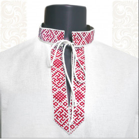 Выполнена из плотного льна, интересно украшена жаккардовым декором. Прямой свободный силуэт, воротник-стойка, втачной рукав, разрезы по боковым швам внизу, пояс в комплекте - делают рубаху удобной и комфортной. При заказе желательно указать обхват груди и рост, рубаху сошьем с учетом указанных Вами мерок.