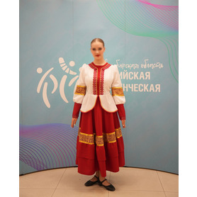 Платье Аврора удлиненное ( миди, до щиколотки) станет отличным вариантом сценического костюма! Сочетание белого и красного цвет, длинная юбка  придают платью торжественности. Свободный силуэт, рукав реглан, регулируемая горловина добавляют вещи комфортности.