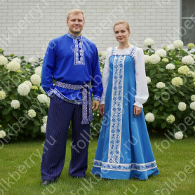 Декор платья - жаккардовая тесьма со славянскими символами. Талия немного завышена, пояс в комплекте.