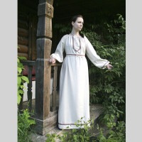 Платье «Дмитра» отрезное по талии, рукав реглан, юбка - почти солнце, длиной немного ниже колена. С поясом. Важно отметить, что декор платья выдержан в славянском стиле, но в целом, платье «Дмитра» - современное прочтение народных традиций. Как правило, дети и подростки с удовольствием выбирают его. Романтичное, удобное и нарядное, оно дарит ощущение радости и праздника. Замечательно подходит для тематических праздников в детских учебных заведениях, по фасону и яркости цветов отлично подойдет для танцевальных коллективов. Платье выполнено из немнущейся, матовой ткани "габардин" символичных для славян цветов ( красного, синего, зеленого, бордового).