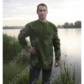 Натуральная ткань, свободный силуэт, отсутствие жесткого воротника, втачной длинный рукав, пояс в комплекте, небольшие разрезы по боковым швам внизу делают рубаху комфортной и удобной.