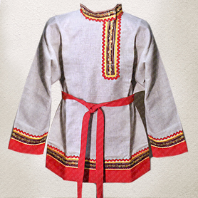 Рубаха "Василёк" выполнена из габардина белого оптического цвета. Декором косоворотки стали большие по размеру вставки из хлопка с цветочным рисунком в сине-голубом цвете и вьюн синего цвета. С Косоворотка без воротника-стойки удобна при надевании на верхнюю одежду (на зимних мероприятиях). Косоворотка "Василек" и сарафан с блузой "Гжель" подойдут для участников одного ансамбля.