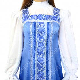 Костюм «Жар-Птица», состоящий из сарафана с блузой, выполнен в традиционном славянском стиле, предназначен для театральных и концертных выступлений, славянских праздников и тематических мероприятий.
